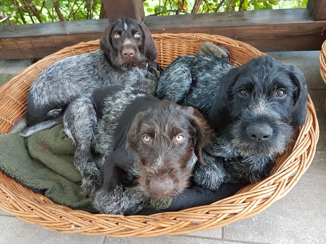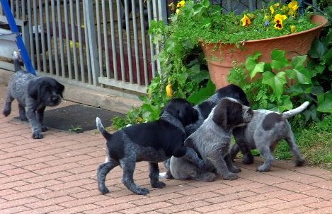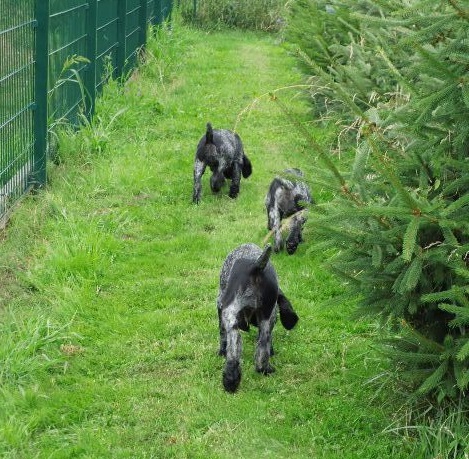 Unsere Welpen sind nun 5 Wochen alt und erobern sich ihre Umwelt von Tag zu Tag mehr. Wir wollen unerschrockene kleine Hundepersönlichkeiten heranbilden, die eng an ihren Führer schließen. Zur unserer Freude werden sie alle einen ausgeprägten Bart bekommen.