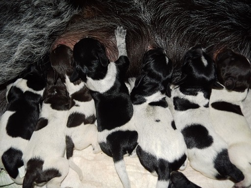 Alle 11 Welpen sowie die Mutterhündin sind wohlauf. Die Welpen sind sehr mobil mit sehr gutem Saugreflex. Das Durchschnittsgewicht der Welpen nach der Geburt betrug 285 g. Der Schwerste war 342g schwer und der Leichteste 196g leicht.