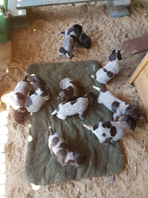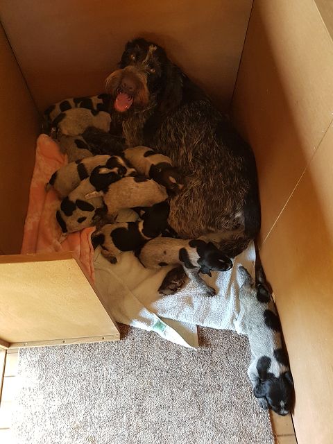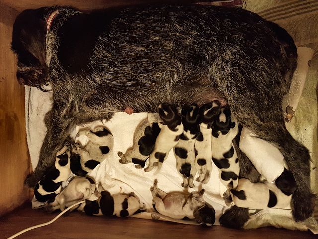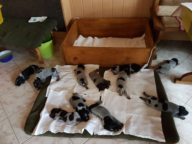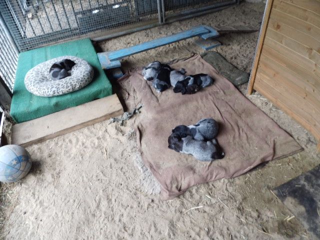 Der C-Wurf aus Raisa II vom Liether Moor und Cico von der Bärenleiten ist am 12. Mai 2017 gefallen. Der Wurf besteht aus 9 Rüden und 2 Hündinnen und teilt sich farblich in 6 Braunschimmel und 5 Schwarzschimmel auf.