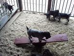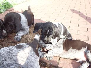 Wir wollen, daß sich unsere Welpen optimal körperlich und geistig entwickeln können. Jeder Hund ist für uns ein „Unikat“ mit individuellen Eigenschaften, die wir bei der Erziehung nutzen müssen. Wir wollen den Welpen so früh, wie möglich in die Lage versetzen seine individuellen Stärken zu entwickeln. Auf einer eigens dafür angelegten Spielwiese können die kleinen Kerle ihre Geschicklichkeit und ihren Mut trainieren.