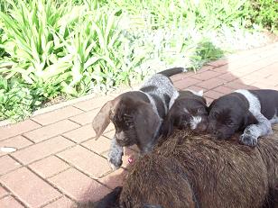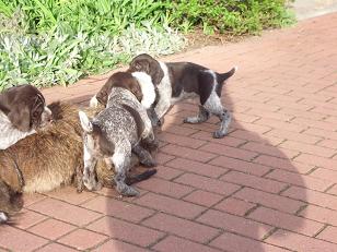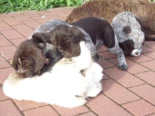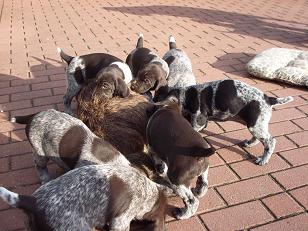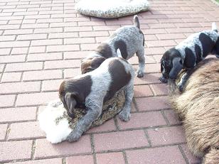 Später sind auch „Familienausflüge“ ins Revier und ans Wasser geplant. Die Herausbildung eines gesunden Sozialverhaltens der Welpen dient ihnen später einmal dazu, ebenfalls eine gute Führer-Hund-Beziehung aufzubauen.