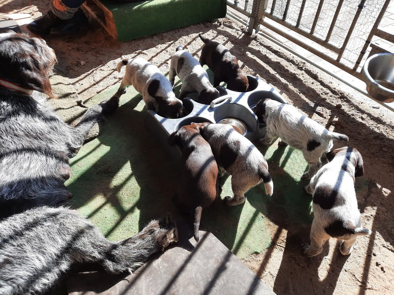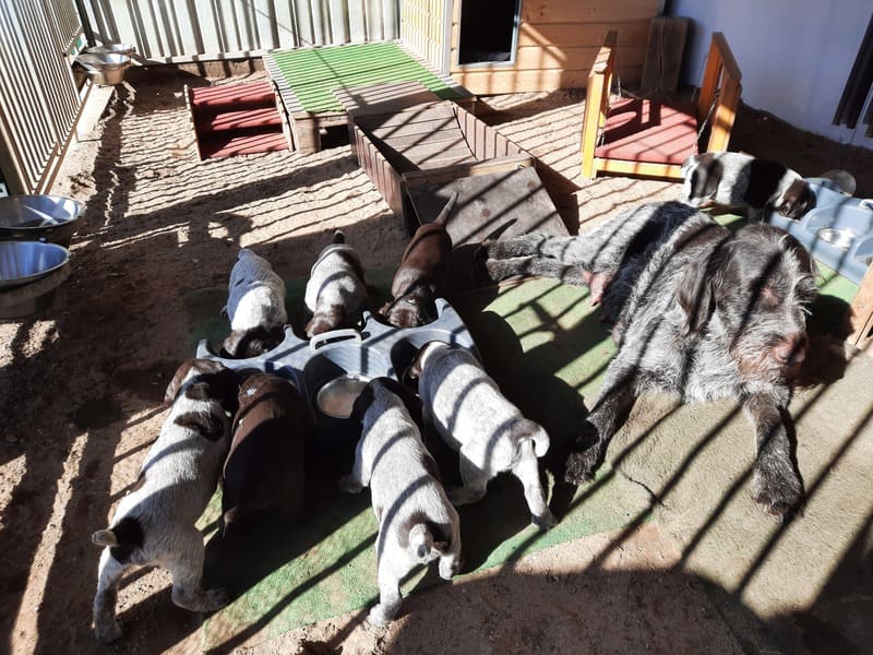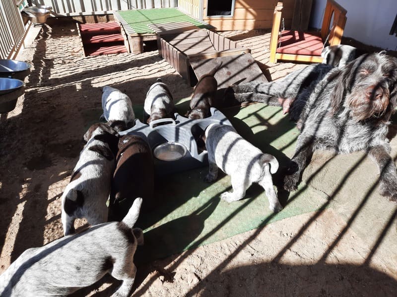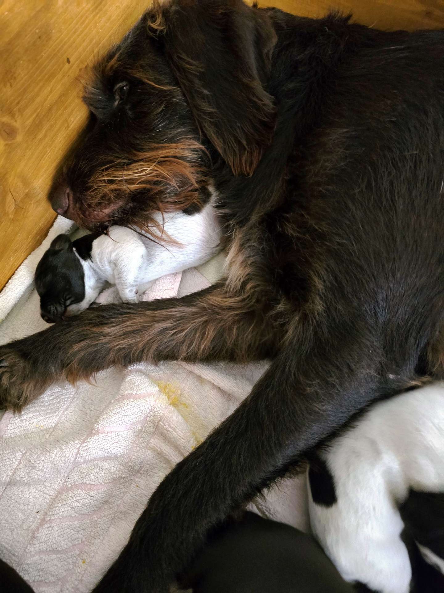 Der zweite Wurf mit Franzi schickt sich an. Erwartetes Wurfdatum um den 09.06.2025. Der Vater der Welpen ist Nox III vom Spanger Forst. Brsch F/H 10/12 F/H 63/65 VJP 77 P.HZP 189 P.VGP IPr.346 P. ÜF Totverbeller SJ-DD sp/sichtaut