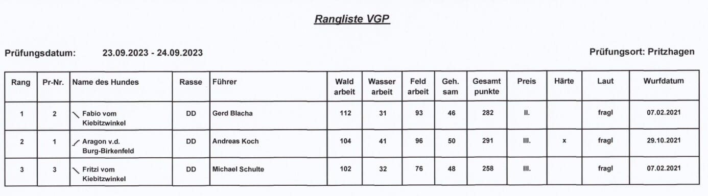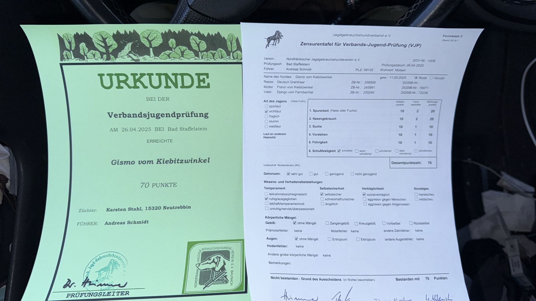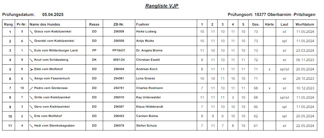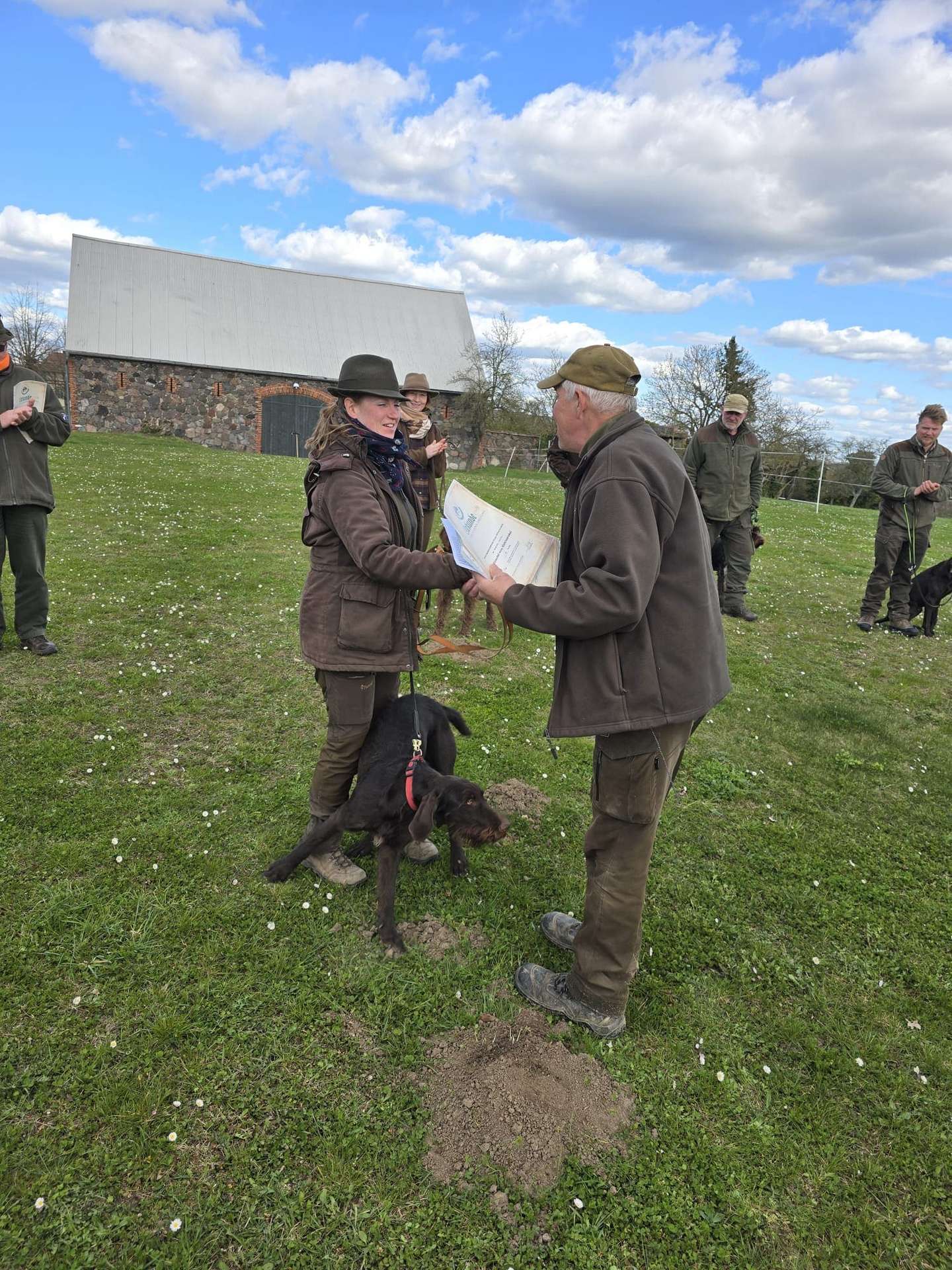 Am 05.04. 2025 lief in der VDD-Märkische Heide unsere erste Jugendsuche. Mit an Bord war der erste Wurf von Franzi vom Kiebitzwinkel. Die Prüfung zeigte die Anlagen sind zum überwiegenden Teil mit sehr gut zu bewerten. Beeindruckend waren die Vorstehleistungen der beiden erstplatzierten Hündinnen. Das weite Markieren der Witterung verbunden mit ständigen Nachziehen bis zur absoluten Vorstehstare war eine Augenweide, die man nicht alle Tage sieht..