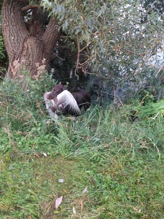 Es gab leider auch tragische Momente. Finja vom Kiebitzwinkel eine vielversprechende Hündin von einer Drückjagd nicht wiedergekommen.