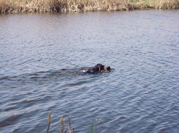 Bei der Wasserarbeit muß der Hund grundsätzlich ans andere Ufer schwimmen.